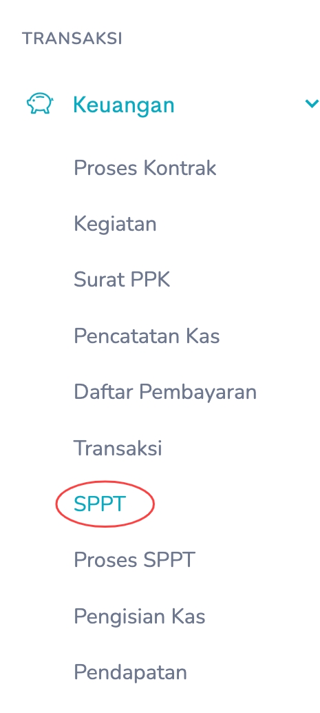 Jika sudah mengisi menu transaksi langkah selanjutnya adalah pembuatan SPP UP. Pembuatan SPP UP ada di Menu Transaksi → Keuangan → SPPT → Tambah SPPT. Tampilan menu seperti di bawah ini